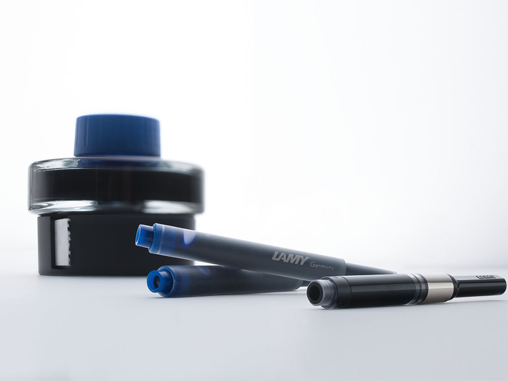 Para poder enfocarse plenamente en su trabajo y dejar volar su imaginación sin distracción alguna, encontrará una gran selección de tintas, cartuchos de tinta y repuestos para rellenar plumas fuente y rollerballs en la tienda online de LAMY. Por lo tanto, el reabastecimiento está a solo unos clics de distancia.